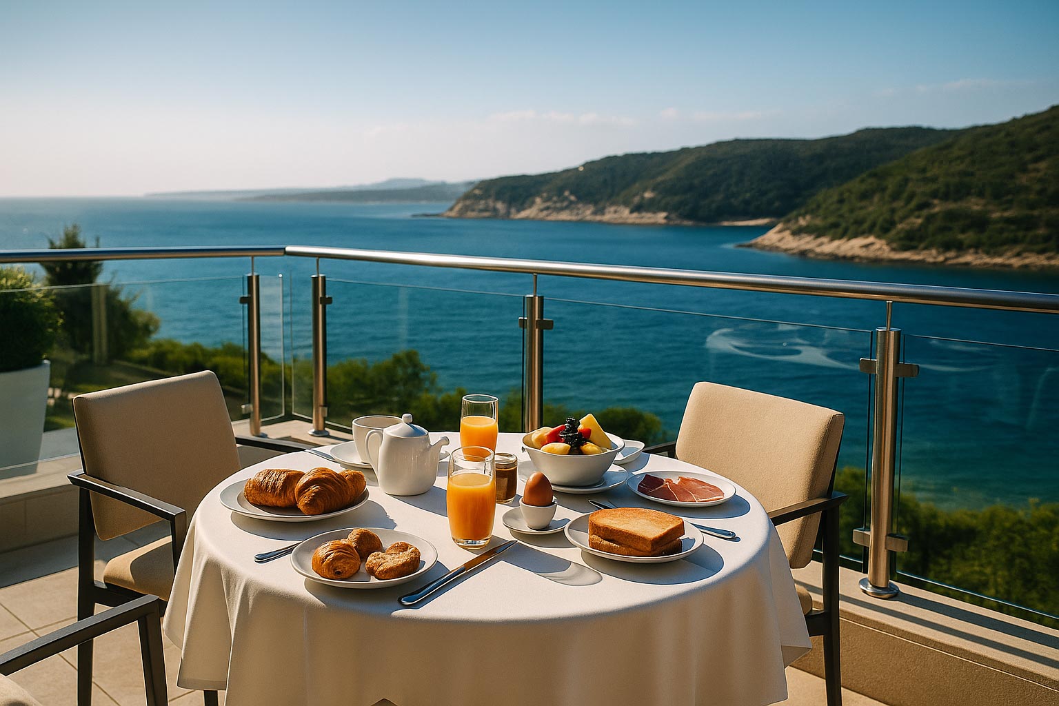 - Commencez la journée tout en douceur avec notre petit-déjeuner gourmet, servi dans notre salle lumineuse ou en terrasse, face à la mer.